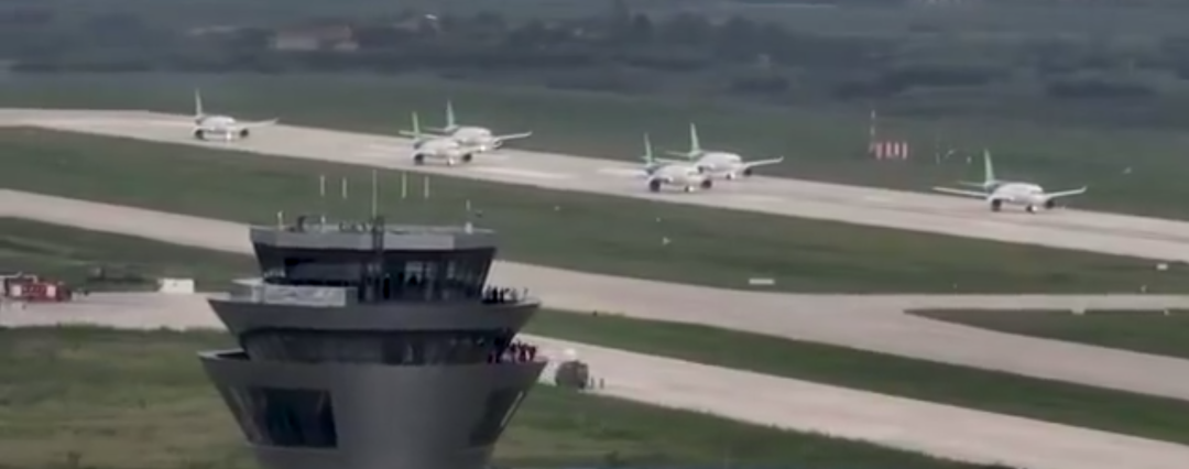 7月19日,在C919大型客機六架試飛機圓滿完成全部試飛任務(wù)之際,C919大型客機試飛現(xiàn)場聯(lián)合指揮部閻良戰(zhàn)區(qū)在陜西渭南機場召開總結(jié)大會。