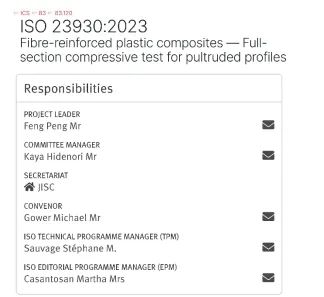 基于扎實的研究數(shù)據(jù)和積極的溝通宣傳,該提案獲得了德國、法國、意大利、瑞士、捷克、韓國、日本、印度等國代表的支持,投票通過由中國牽頭制定標準ISO 23930《纖維增強塑料復合材料——拉擠型材全截面壓縮試驗方法》。此后,我國專家代表組織各國同行進行驗證,經(jīng)過多輪討論修改,歷時4年,完成了該標準的編制,于2023年2月正式發(fā)布。