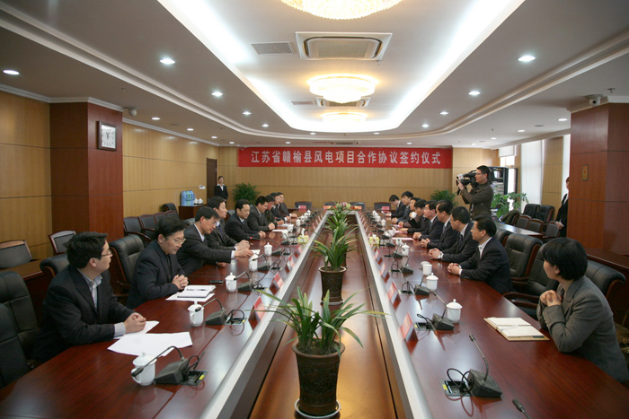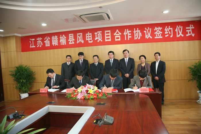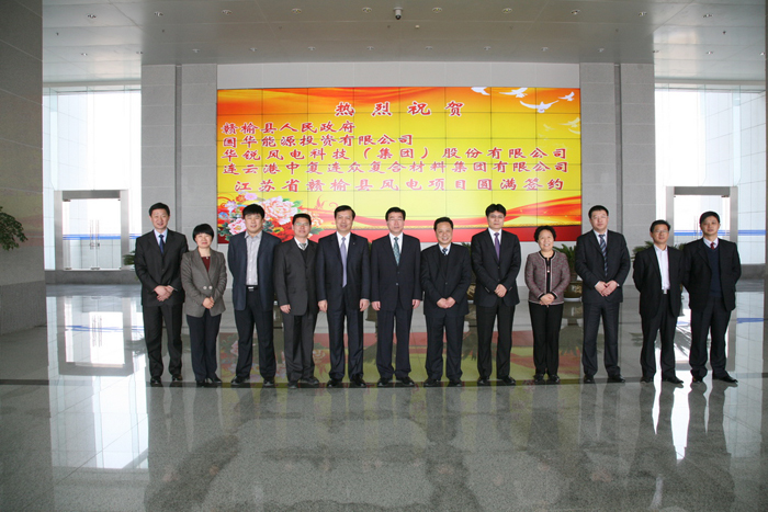 4月6日,由贛榆縣人民政府、國(guó)華能源投資有限公司、華銳風(fēng)電科技股份有限公司、連云港中復(fù)連眾復(fù)合材料集團(tuán)有限公司四方共同協(xié)商合作的江蘇省贛榆縣風(fēng)電項(xiàng)目簽約儀式在贛榆縣舉行。連云港市政協(xié)副主席徐曄宇;國(guó)華能源投資公司黨委書記、副總經(jīng)理桂凱;華銳風(fēng)電科技股份有限公司董事長(zhǎng)韓俊良;中國(guó)復(fù)合材料集團(tuán)有限公司董事長(zhǎng)、總經(jīng)理張定金;中復(fù)連眾董事長(zhǎng)任桂芳以及贛榆縣委縣政府相關(guān)領(lǐng)導(dǎo)等出席了簽字儀式。