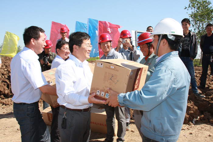 在貫通儀式上,孫中華主任對中復(fù)新水源的工作表示肯定,并希望中復(fù)新水源再接再厲,抓緊做好管道施工沿線的土地恢復(fù)和道路修復(fù),為老百姓交上一份滿意的答卷,繼續(xù)高度重視安全生產(chǎn),狠抓工程質(zhì)量,按期完成工程的各項節(jié)點任務(wù),為徐圩新區(qū)建設(shè)添磚加瓦。在雙節(jié)來臨之際,孫主任向在場的建設(shè)單位和施工單位的同志們表示節(jié)日的問候,并送上慰問品。