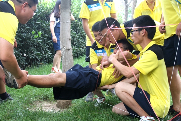 在進(jìn)行絕地救援活動時,兩隊(duì)急于完成任務(wù),隊(duì)員之間沒能進(jìn)行很好的溝通,沒有全部用上所給的工具,最終導(dǎo)致該項(xiàng)活動失敗。隨后,教練為大家做了正確的示范,并說明了集思廣益和團(tuán)隊(duì)意識的重要性。