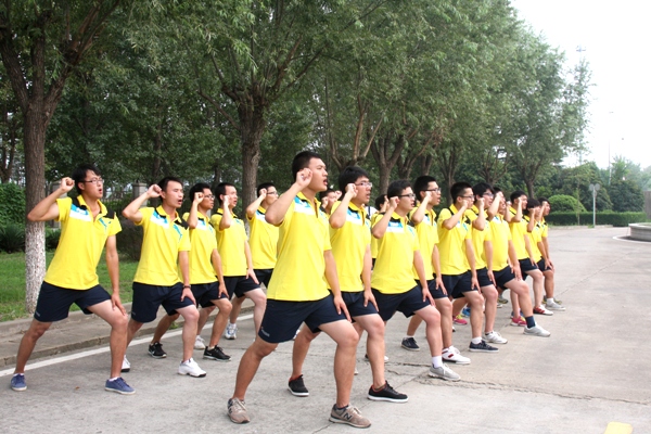 全體人員被隨機(jī)分為夢十二隊(duì)和雄鷹隊(duì)兩隊(duì),設(shè)計各隊(duì)的口號和隊(duì)歌?;顒诱介_始前,教練帶領(lǐng)全體學(xué)員進(jìn)行簡單的立正、稍息訓(xùn)練,之后開始了絕地救援、信任背摔、時間管理、穿越電網(wǎng)等一系列拓展訓(xùn)練活動。