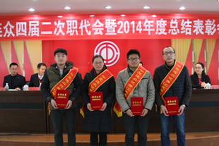 1月24日,中復連眾召開四屆二次職代會暨2014年度總結表彰會議,貫徹傳達中國建材集團、中國復材集團2015年工作會議精神,表彰先進,交流經(jīng)驗,回顧總結了公司2014年的經(jīng)營管理和工會工作,研究部署2015年的工作。董事長任桂芳就做好2015年的經(jīng)營和工會工作,提出四點要求,總經(jīng)理喬光輝作了題為《深化管理整合確保集團全面質(zhì)量提升》的年度工作報告。為響應八項規(guī)定和群眾路線教育實踐有關要求,本次會議采取總結表彰會議與職代會“套開”形式舉行,提高會議效率,實現(xiàn)節(jié)儉辦會。職工代表、中層及以上管理人員、部門代表共計150余人出席會議。會議由副總經(jīng)理南洋主持。