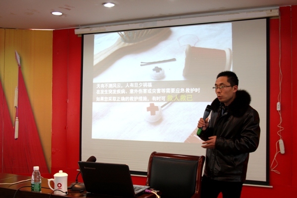 在培訓(xùn)中,刁主任通過多媒體和現(xiàn)場(chǎng)實(shí)際演示的方式向大家講解了一些如:止血、包扎、骨折固定與搬運(yùn)、心肺復(fù)蘇等日常急救常識(shí)?;顒?dòng)過程中,廣大員工認(rèn)真聆聽、記錄,最后刁主任給大家現(xiàn)場(chǎng)演示心肺復(fù)蘇,并邀請(qǐng)了兩名員工進(jìn)行演練。