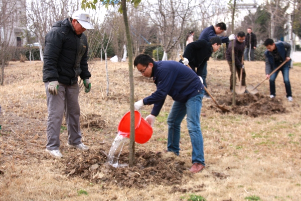 3月14日,中復(fù)連眾啟動(dòng)一年一度的植樹(shù)綠化活動(dòng),來(lái)自行政部、財(cái)務(wù)部、信息管理部等部門(mén)的三十余名黨員干部和積極分子在董事長(zhǎng)任桂芳的帶領(lǐng)下,共同在和諧園栽種了一批女貞、紫葉李和木槿等苗木,此前在和諧園栽種的樹(shù)木全部成活,長(zhǎng)勢(shì)良好。在植樹(shù)的同時(shí),大家又給園內(nèi)的其他樹(shù)木進(jìn)行了澆水、圍土,揀除園內(nèi)雜物,進(jìn)一步美化廠區(qū)環(huán)境。