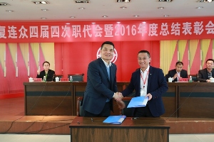 公司以總結(jié)表彰會(huì)與工會(huì)職代會(huì)“套開”的形勢(shì)舉行,促進(jìn)了職工參與民主管理。副總經(jīng)理、工會(huì)主席王彤兵在題為《圍繞中心 強(qiáng)化服務(wù) 努力開創(chuàng)中復(fù)連眾工會(huì)工作新局面》的報(bào)告中回顧總結(jié)了2016年在企業(yè)民主管理、創(chuàng)新團(tuán)隊(duì)建設(shè)、職工素質(zhì)提升、和諧企業(yè)構(gòu)建和企業(yè)文化建設(shè)等方面開展的工作,深刻剖析了存在的不足,面向2017年工作, 要求做好融入中心工作、提升職工素質(zhì)、推進(jìn)民主管理、維護(hù)職工權(quán)益、開展文體活動(dòng)、加強(qiáng)自身建設(shè)等六個(gè)方面的工作。大會(huì)報(bào)告了四屆三次職代會(huì)提案落實(shí)和本次職代會(huì)提案收集情況。