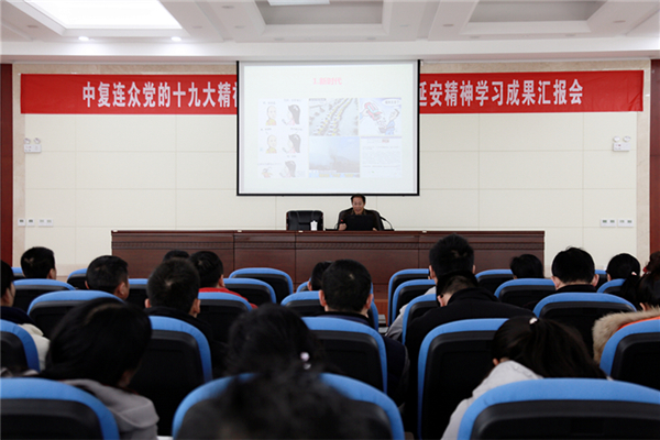 11月25日,中復(fù)連眾舉行黨的十九大精神專題輔導(dǎo)暨井岡山精神、延安精神學(xué)習(xí)成果匯報(bào)會(huì),把學(xué)習(xí)十九大精神與弘揚(yáng)革命精神結(jié)合起來,教育和引導(dǎo)黨員干部堅(jiān)定理想信念,牢記宗旨使命。公司黨委書記、總經(jīng)理喬光輝,黨委副書記、紀(jì)委書記王彤兵,財(cái)務(wù)總監(jiān)張小平及在連黨員、積極分子、發(fā)展對(duì)象100余人參加會(huì)議。